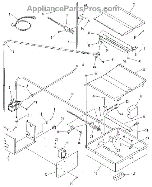 This broiler burner baffle directs heat and flames across the broiler chamber to promote even cooking and help protect the burner from drips and debris. It's a simple, durable sheet metal part used in gas broilers. What it does: