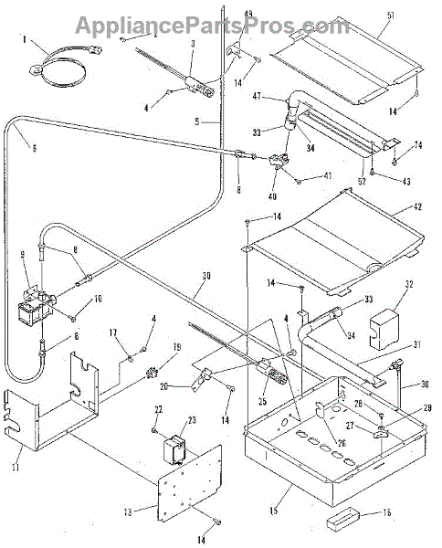 This broiler burner baffle directs heat and flames across the broiler chamber to promote even cooking and help protect the burner from drips and debris. It's a simple, durable sheet metal part used in gas broilers. What it does: