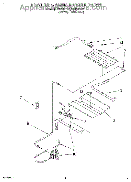 Parts for Roper FGS387YL3: 03 - Broiler & Oven Burner Parts