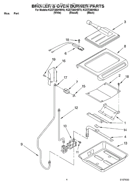 Parts for Kitchenaid KGST300HBL9: 04 - Broiler And Oven Burner Parts
