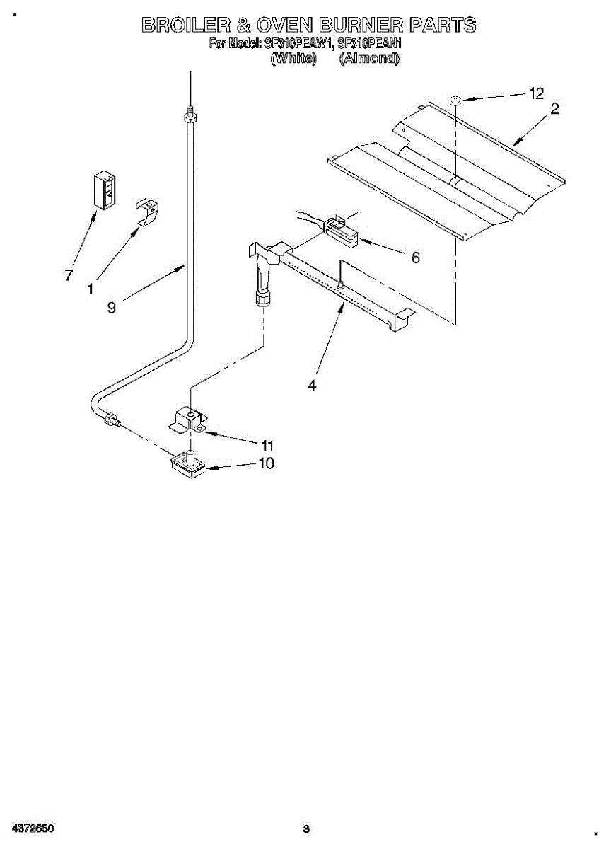 Parts for Whirlpool SF310PEAN1: 03 - Broiler & Oven Burner Parts