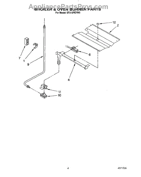 Parts for Whirlpool SF310PEYW0: 04 - Broiler And Oven Burner Parts