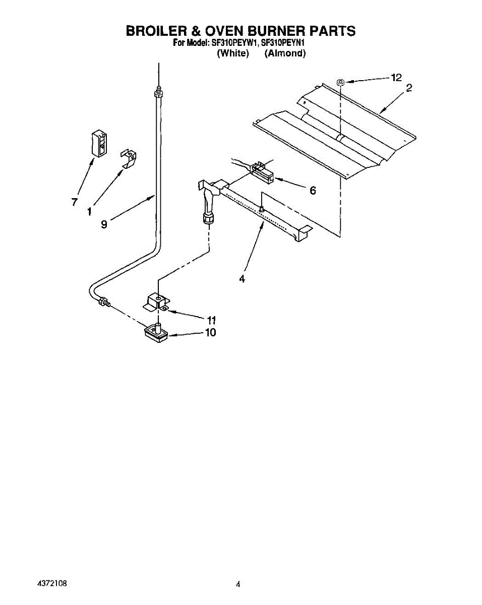Parts for Whirlpool SF310PEYW1: 03 - Broiler & Oven Burner Parts