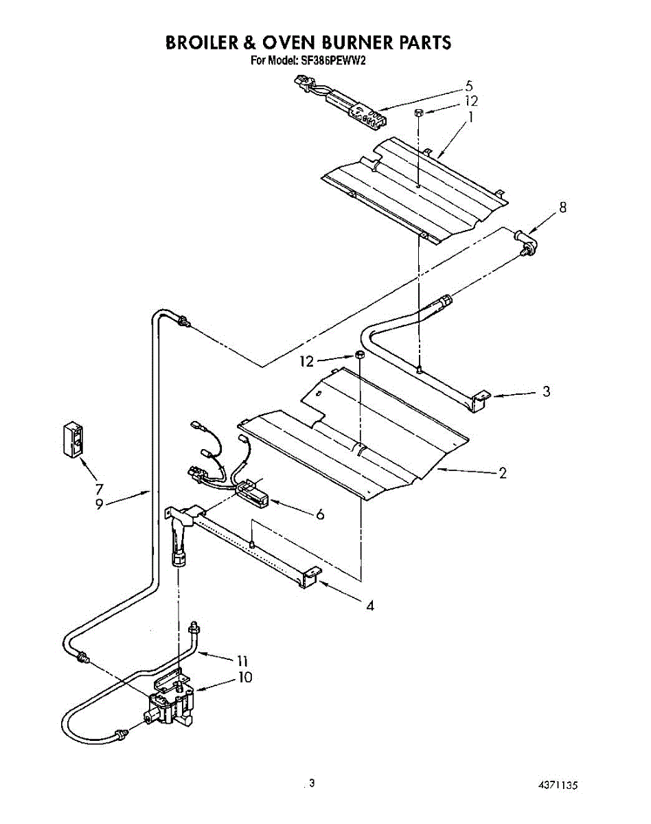 Parts for Whirlpool SF386PEWW2: 02 - Broiler And Oven Burner Parts