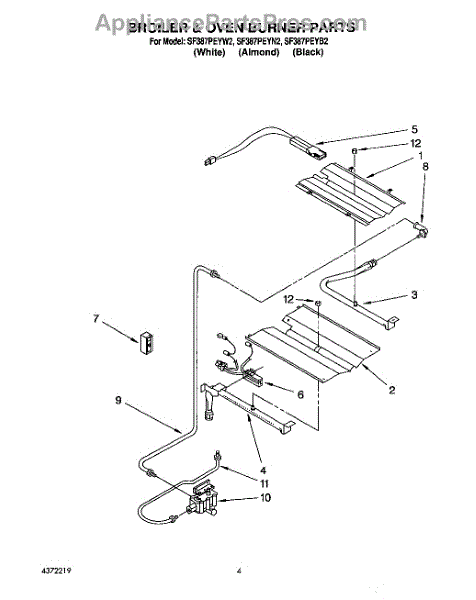 Parts for Whirlpool SF387PEYB2: 04 - Broiler & Oven Burner Parts