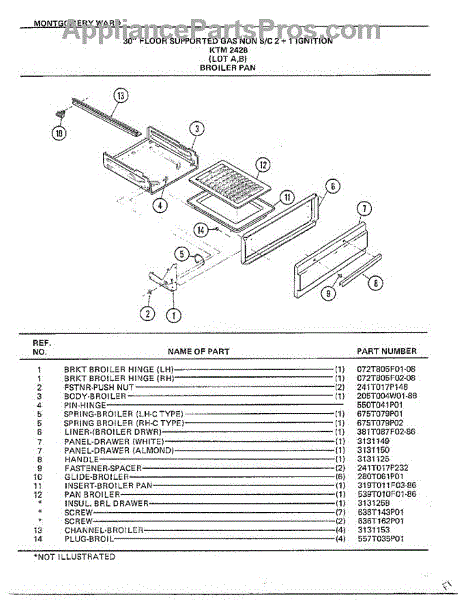 Parts for Frigidaire 2428A: Broiler Pan Parts