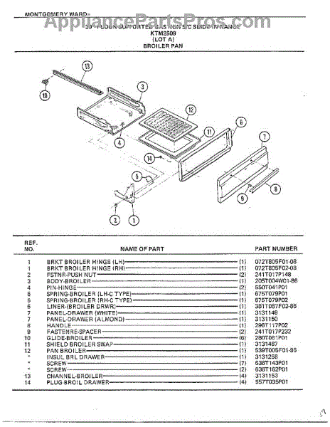 Parts for Frigidaire 2509A: Broiler Pan Parts