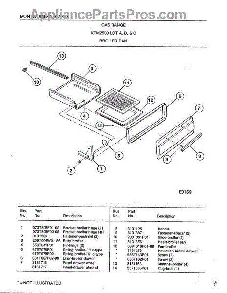 Parts for Frigidaire 2530B: Broiler Pan Parts