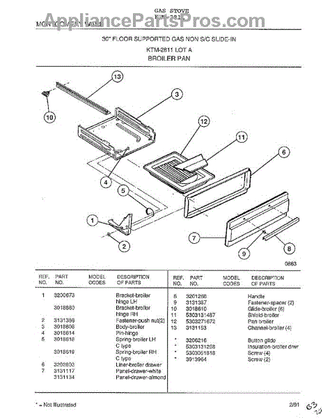 Parts for Frigidaire 2811: Broiler Pan Parts