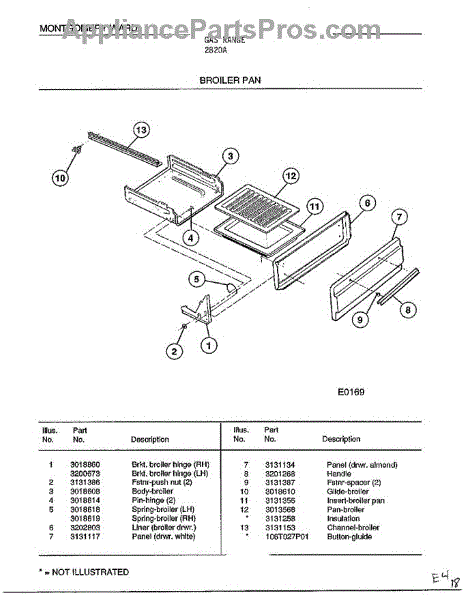 Parts for Frigidaire 2820A: Broiler Pan Parts