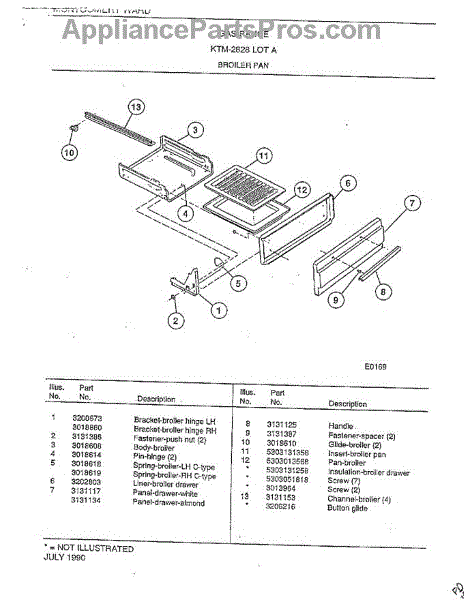 Parts for Frigidaire 2828A: Broiler Pan Parts