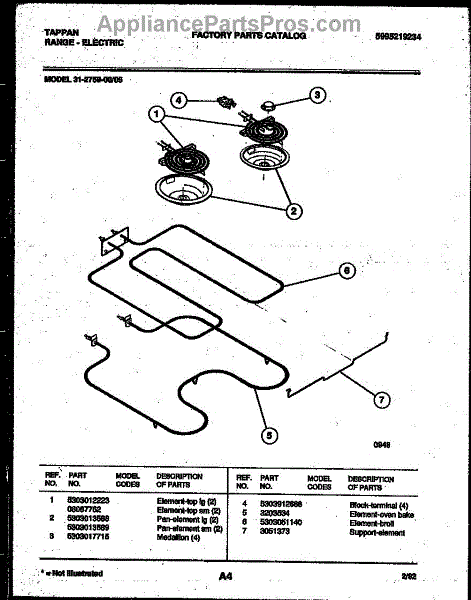 Parts for Frigidaire 31-2759-00-05: 04 - Broiler Parts