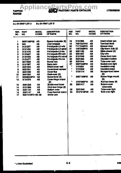 Parts for Frigidaire 31-4998-08-02: 05 - Broiler Parts