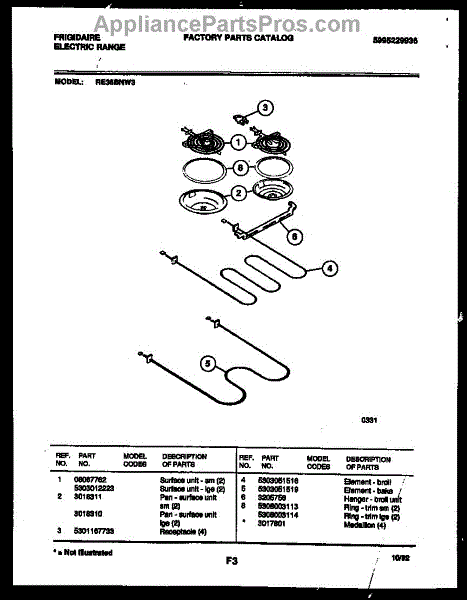 Parts for Frigidaire RE36BNL3: 02 - Broiler Parts