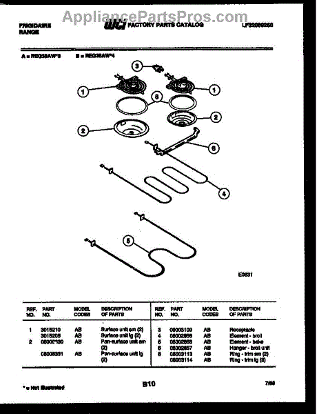 Parts for Frigidaire REG36AW3: 05 - Broiler Parts