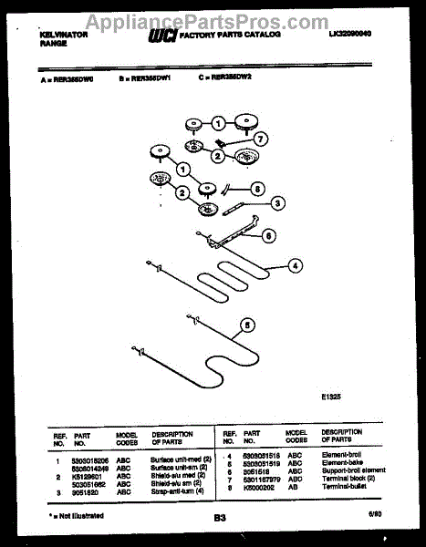 This broil element mounts at the top of the oven cavity and provides high, radiant heat for broiling and top-browning. Replace it if the broiler won't heat, heats unevenly, or the element shows visible damage.