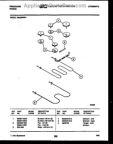 Parts for Frigidaire RS33BNW1: 05 - Broiler Parts