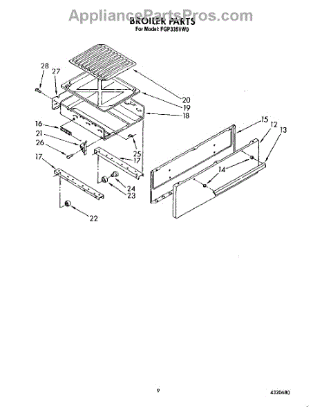 Parts for Roper FGP335VW0: 07 - Broiler Parts