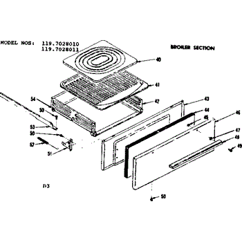 Parts for Kenmore 119.7028010 (1197028010, 119 7028010): Broiler Section Parts