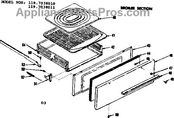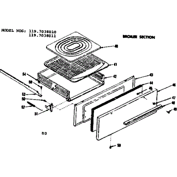 Parts for Kenmore 119.7038011 (1197038011, 119 7038011): Broiler Section Parts