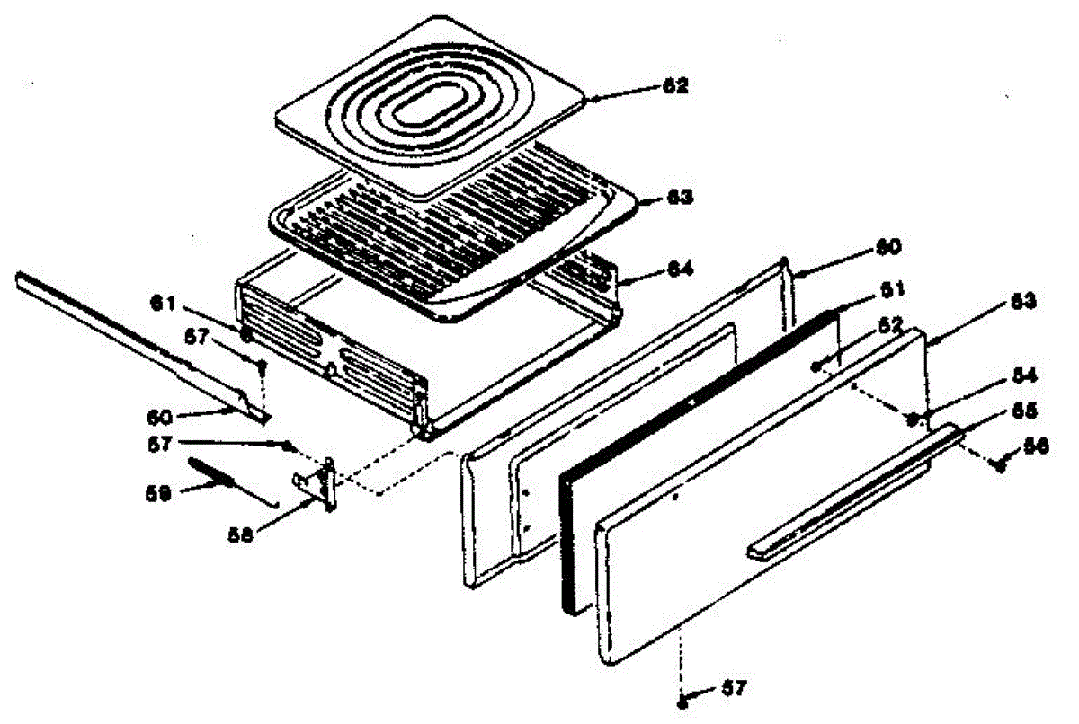 Drawer assembly for ovens and ranges. Replaces broken, cracked, or damaged drawer components. Essential for restoring storage functionality.