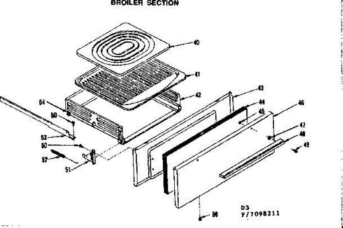 Parts for Kenmore 119.7098211 (1197098211, 119 7098211): Broiler Section Parts