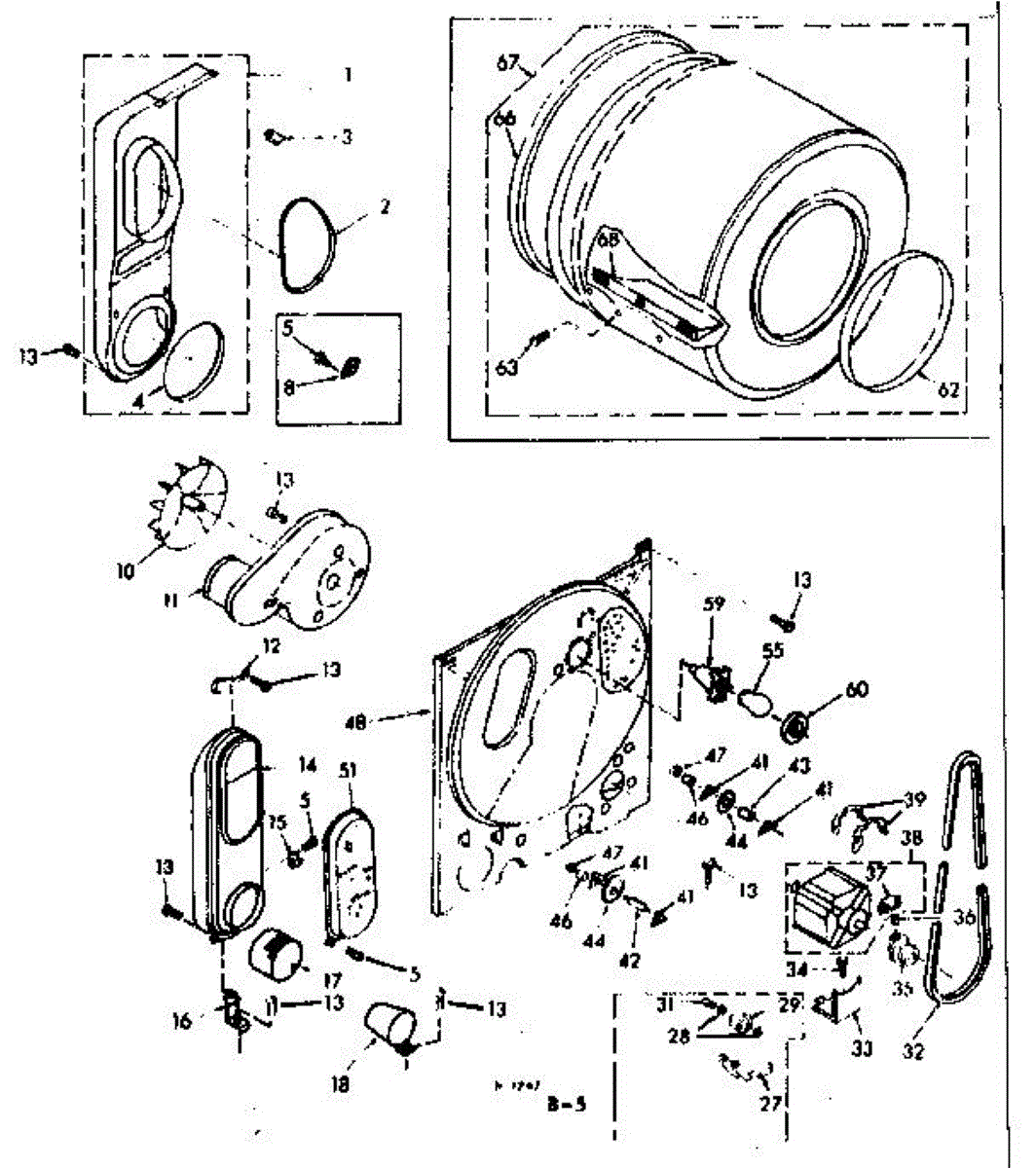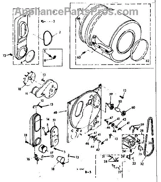 Replacement drum front bulkhead for dryers. Installs at the front of the drum assembly. Needed when original is cracked, damaged, or worn out.