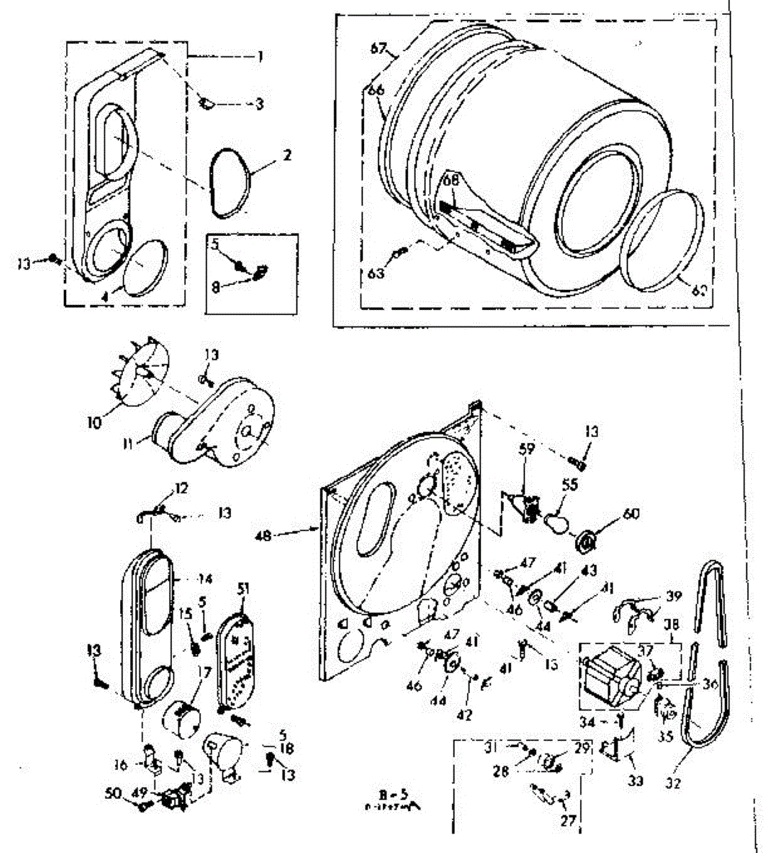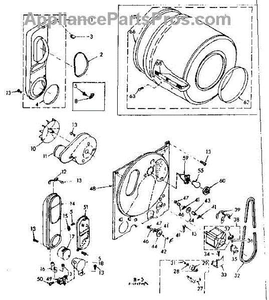 Replacement drum front bulkhead for dryers. Installs at the front of the drum assembly. Needed when original is cracked, damaged, or worn out.