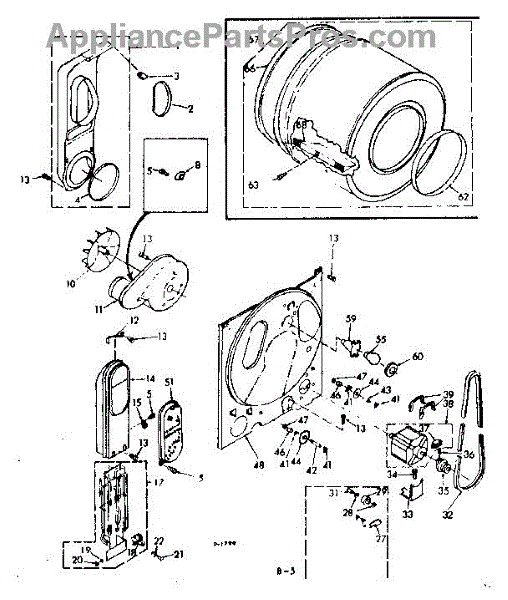 Replacement drum front bulkhead for dryers. Installs at the front of the drum assembly. Needed when original is cracked, damaged, or worn out.