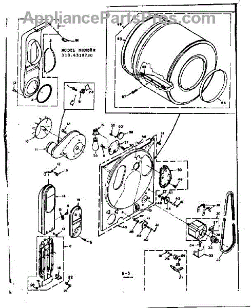 Complete drum assembly for dryers. Houses and rotates laundry during cycles. Replace if cracked, warped, damaged, or worn from extended use.