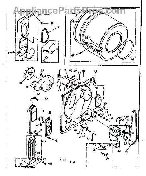 Complete drum assembly for dryers. Houses and rotates laundry during cycles. Replace if cracked, warped, damaged, or worn from extended use.