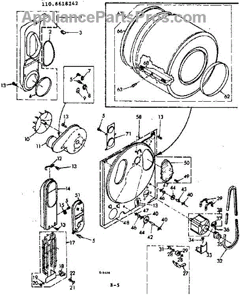 Replacement drum front bulkhead for dryers. Installs at the front of the drum assembly. Needed when original is cracked, damaged, or worn out.