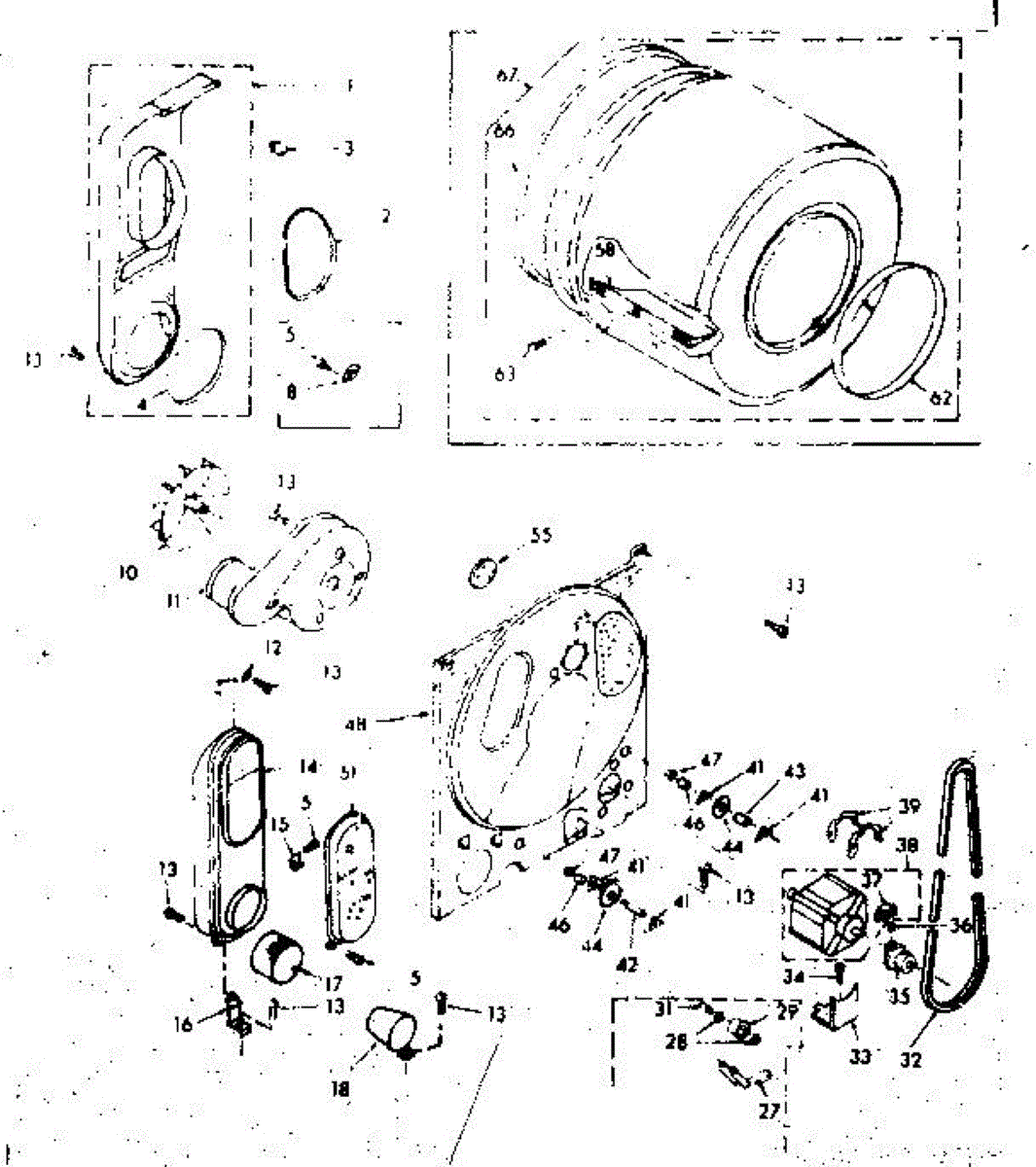 Complete drum assembly for dryers. Houses and rotates laundry during cycles. Replace if cracked, warped, damaged, or worn from extended use.