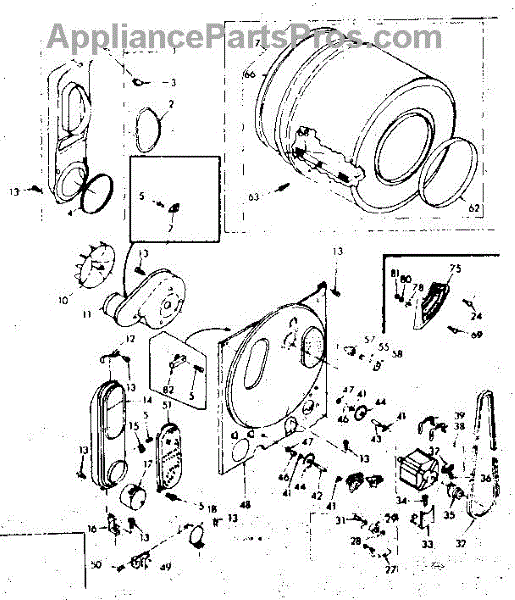 Complete drum assembly for dryers. Houses and rotates laundry during cycles. Replace if cracked, warped, damaged, or worn from extended use.