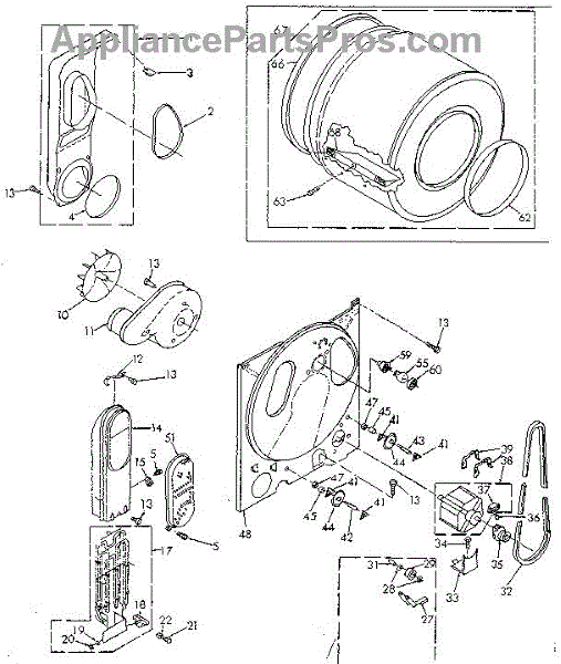 Idler pulley maintains belt tension in your dryer drum assembly. Replace if the wheel is cracked, bracket is broken, or pulley has worn bearings.