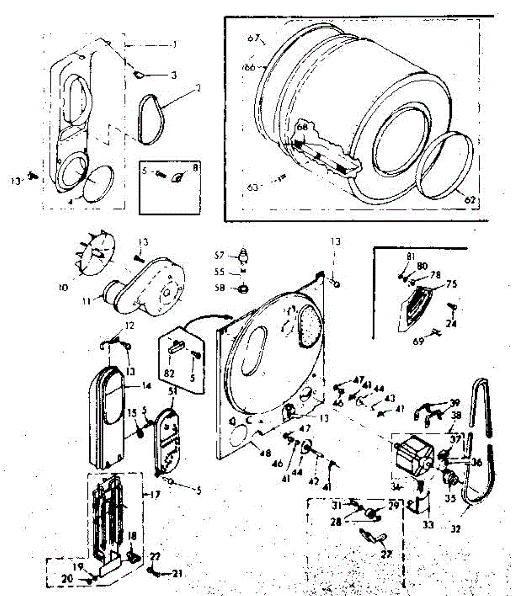 Complete drum assembly for dryers. Houses and rotates laundry during cycles. Replace if cracked, warped, damaged, or worn from extended use.