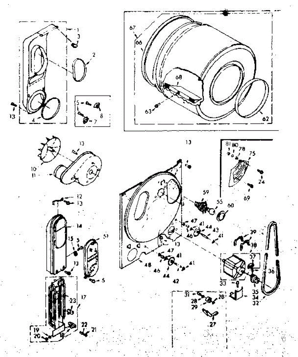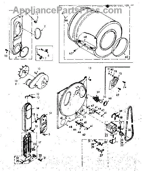 Complete drum assembly for dryers. Houses and rotates laundry during cycles. Replace if cracked, warped, damaged, or worn from extended use.