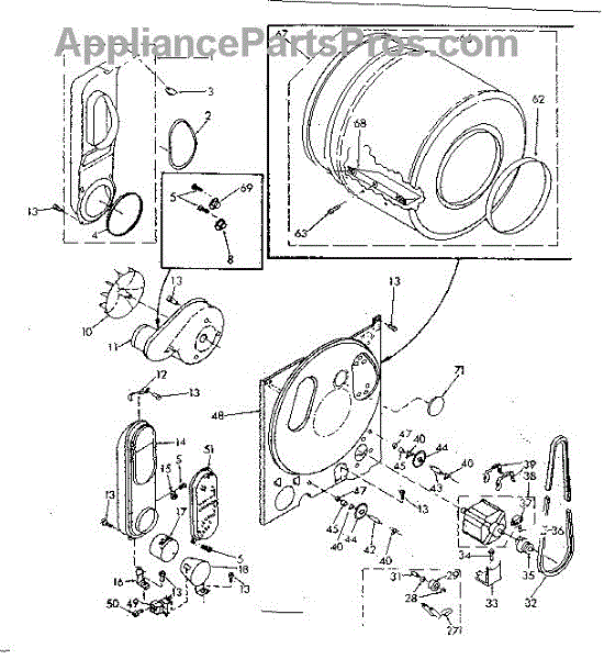 Idler pulley maintains belt tension in your dryer drum assembly. Replace if the wheel is cracked, bracket is broken, or pulley has worn bearings.