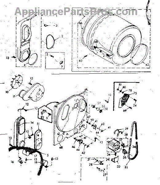 Complete drum assembly for dryers. Houses and rotates laundry during cycles. Replace if cracked, warped, damaged, or worn from extended use.