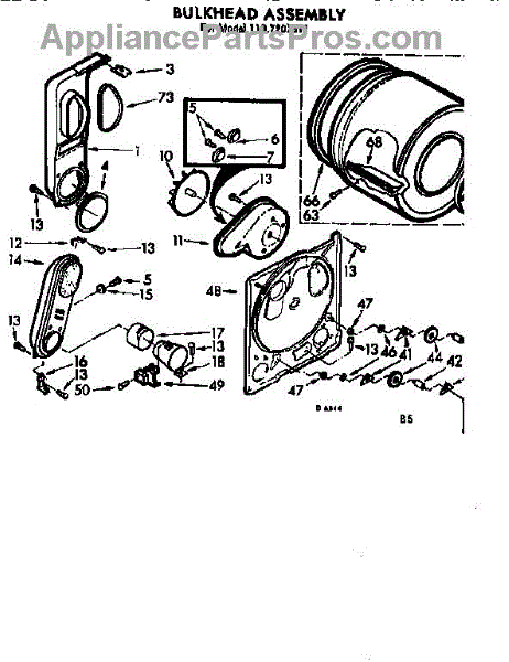 Replacement drum front bulkhead for dryers. Installs at the front of the drum assembly. Needed when original is cracked, damaged, or worn out.