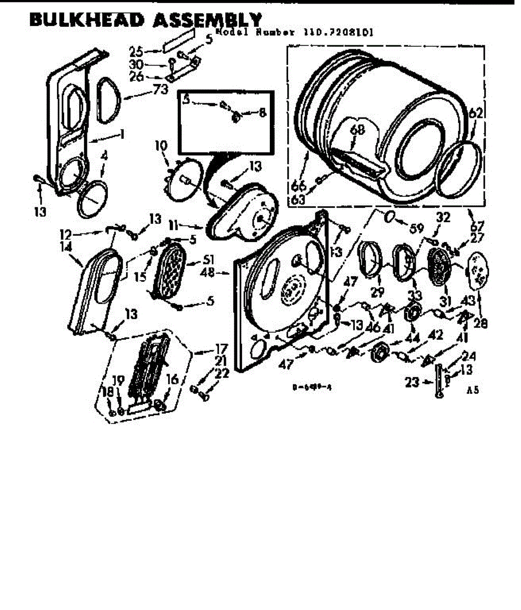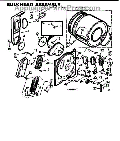 Replacement drum front bulkhead for dryers. Installs at the front of the drum assembly. Needed when original is cracked, damaged, or worn out.