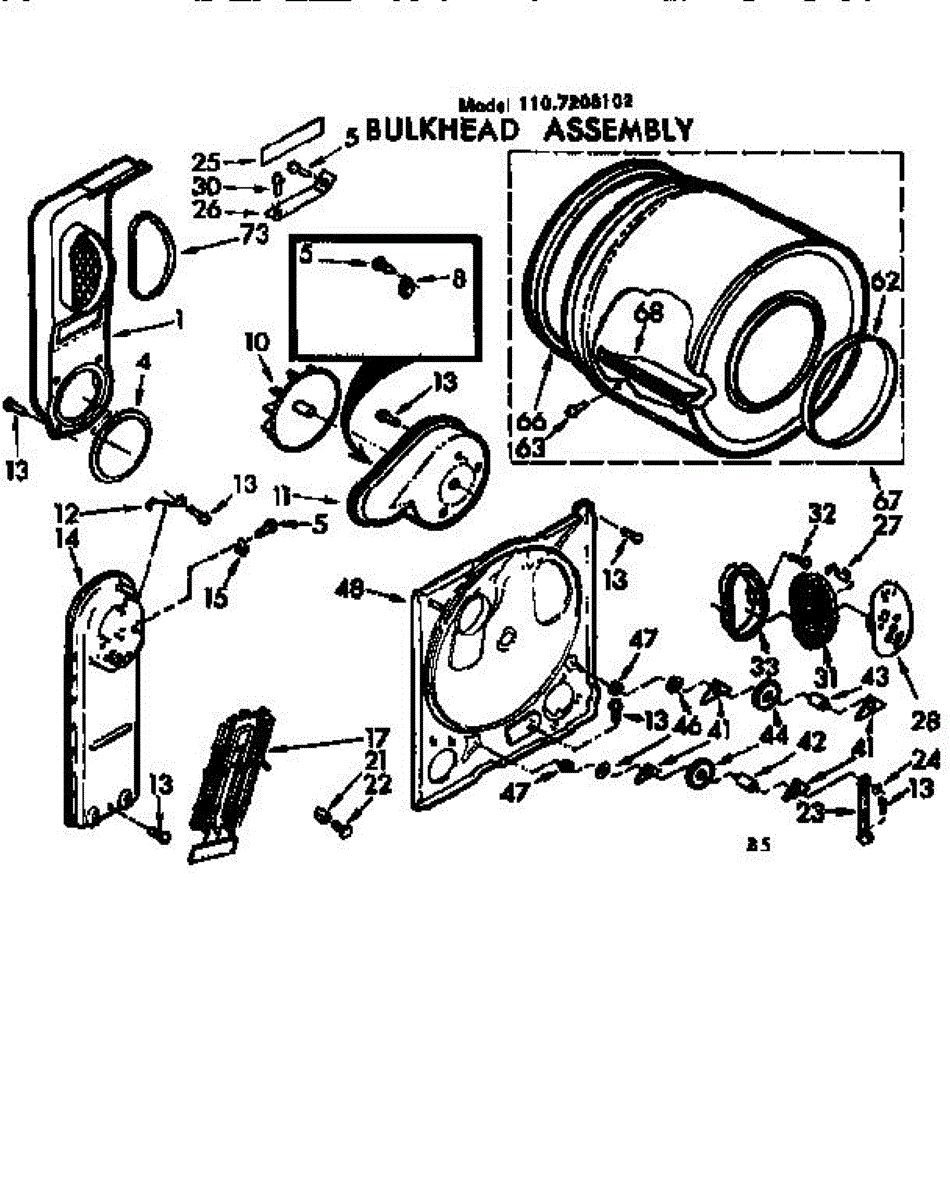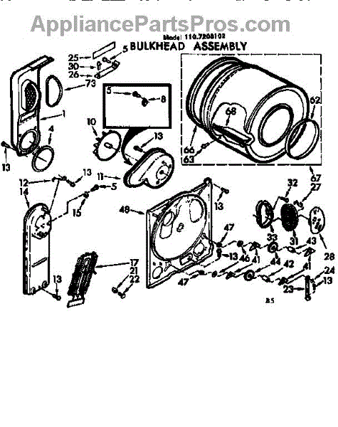 Replacement drum front bulkhead for dryers. Installs at the front of the drum assembly. Needed when original is cracked, damaged, or worn out.
