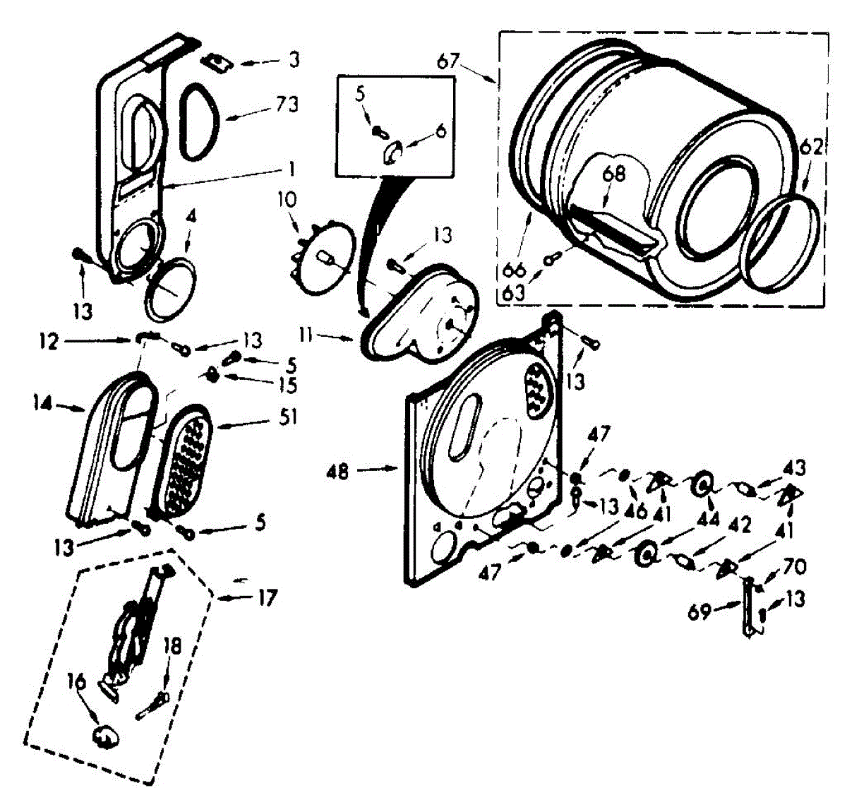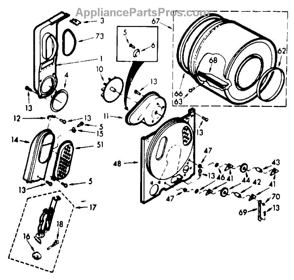Replacement drum front bulkhead for dryers. Installs at the front of the drum assembly. Needed when original is cracked, damaged, or worn out.