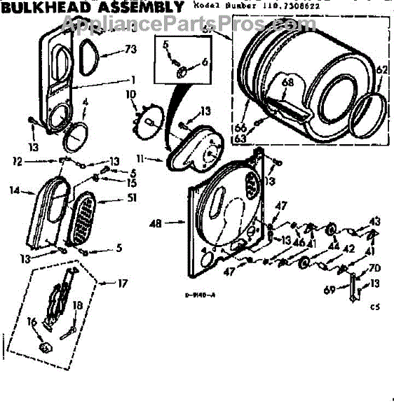Replacement drum front bulkhead for dryers. Installs at the front of the drum assembly. Needed when original is cracked, damaged, or worn out.