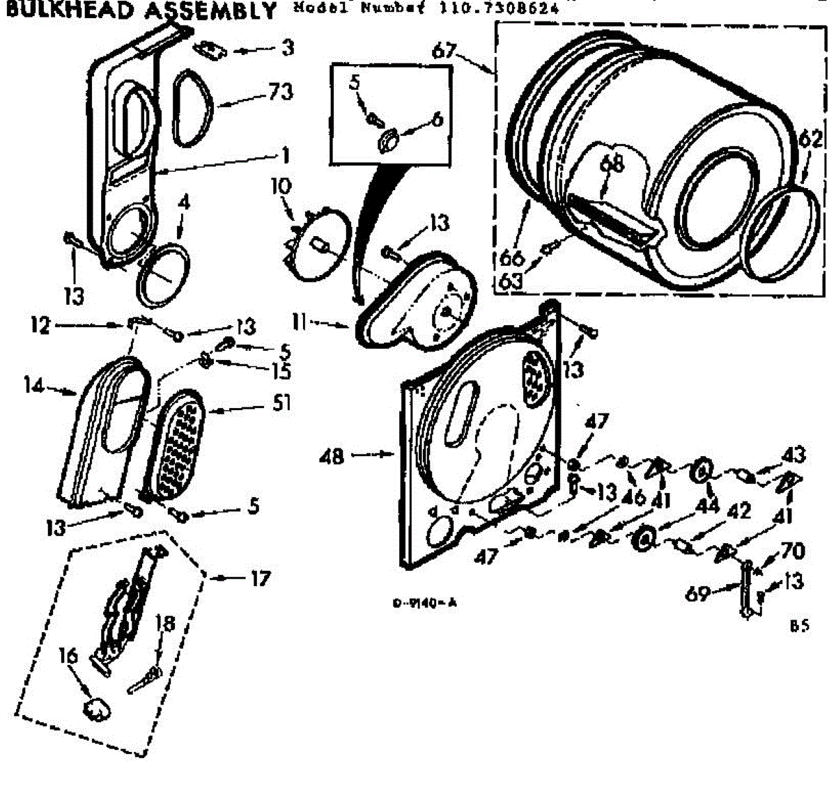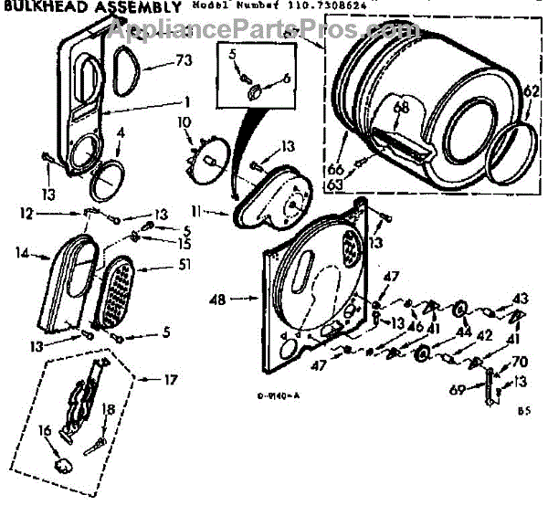 Replacement drum front bulkhead for dryers. Installs at the front of the drum assembly. Needed when original is cracked, damaged, or worn out.