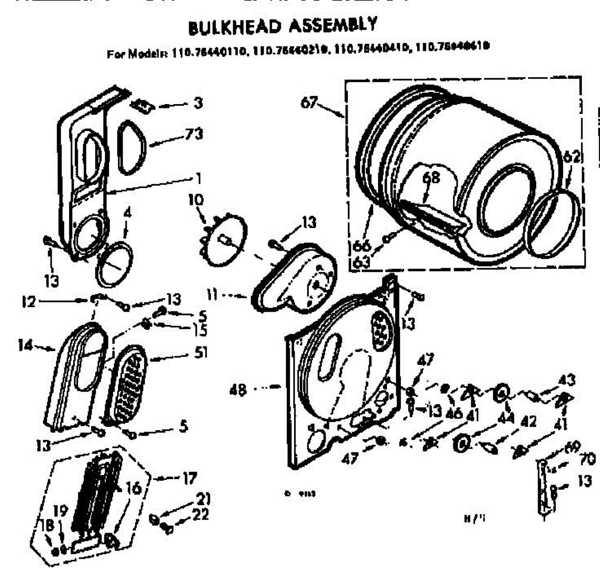 Replacement drum front bulkhead for dryers. Installs at the front of the drum assembly. Needed when original is cracked, damaged, or worn out.