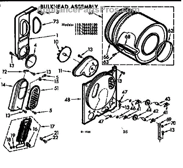 Parts for Kenmore 110.76440200 (11076440200, 110 76440200): Bulkhead Assembly Parts