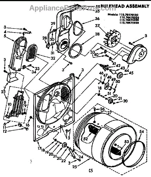 Seals the rear of the dryer drum to prevent hot air loss and ensure even drying. Replace when worn, cracked, or causing noise. Verify fit by model.