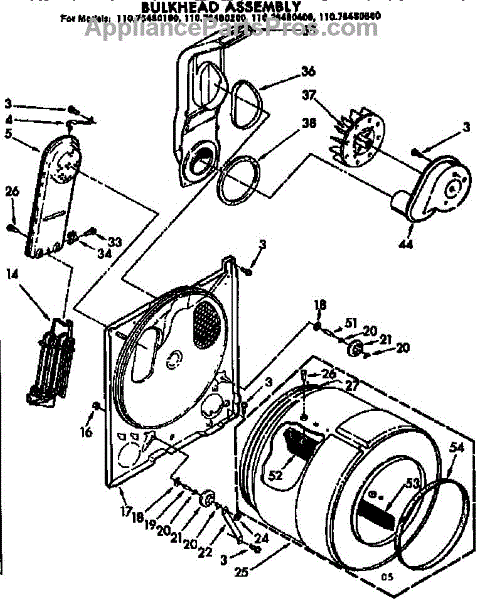 Parts for Kenmore 110.76480600 (11076480600, 110 76480600): Bulkhead Assembly Parts
