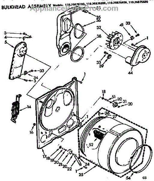 Replacement drum front bulkhead for dryers. Installs at the front of the drum assembly. Needed when original is cracked, damaged, or worn out.